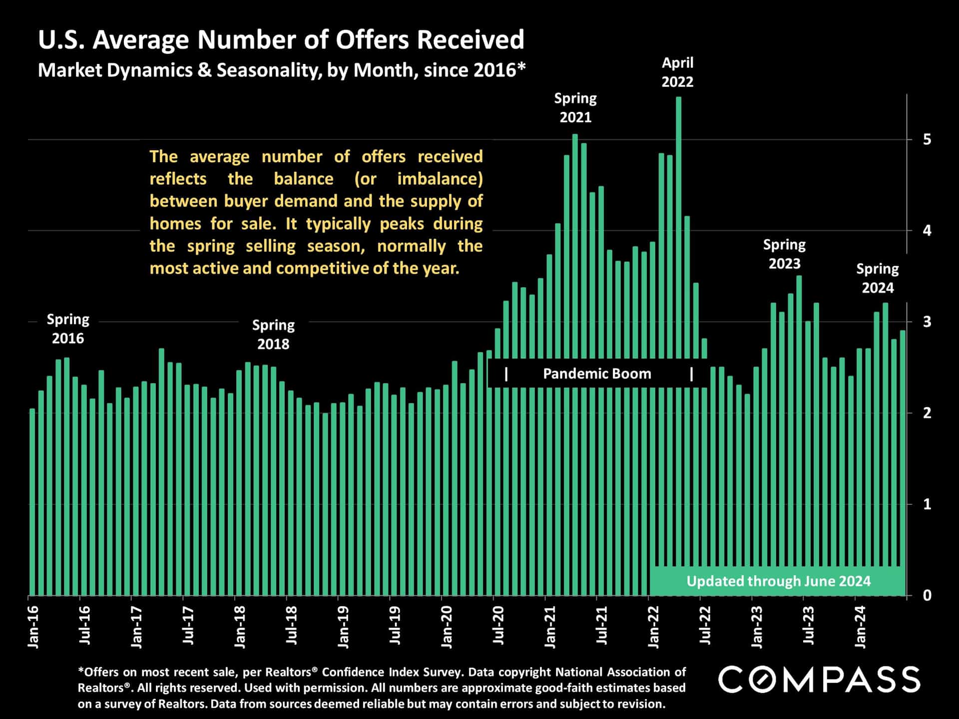 Even with interest rates spiking over the past two years, eliminating a great percentage of prospective buyers, the average number of offers received on any given listing has grown, indicating that buyers are hungry, inclined to bid decisively, and better prepared to deal with adversity.